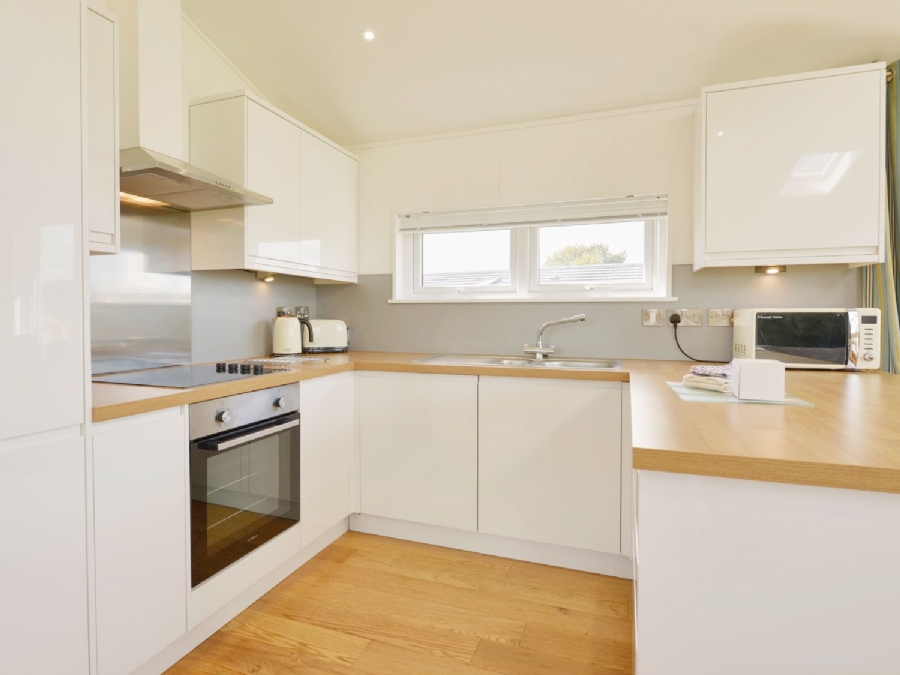 The lodge has a bright and airy open-plan living area with a white modern kitchen, dining area with ample seating making it perfect for relaxing in front of the wall mounted flat screen TV.