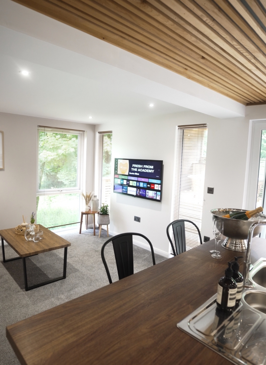 This is a holiday lodge to enjoy with the whole family. Snuggle up together in the plush sofas and fireside chairs as you watch your favourite show.