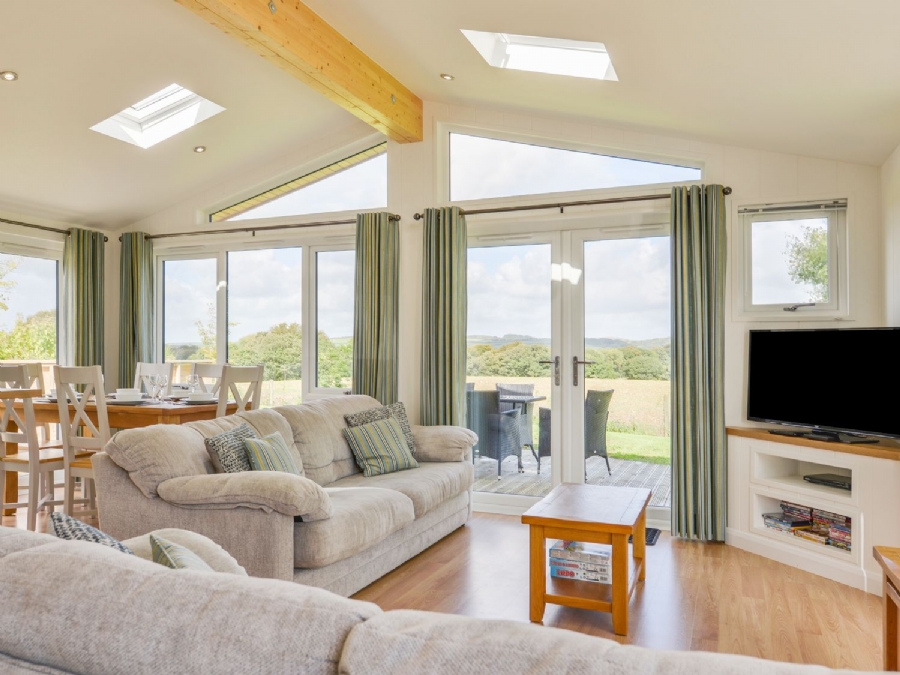 The highlight of 4 Hedgerow is the wrap around terrace with lovely views out over the Stonerush Lakes park, and the rolling hills of the surrounding Cornish countryside.