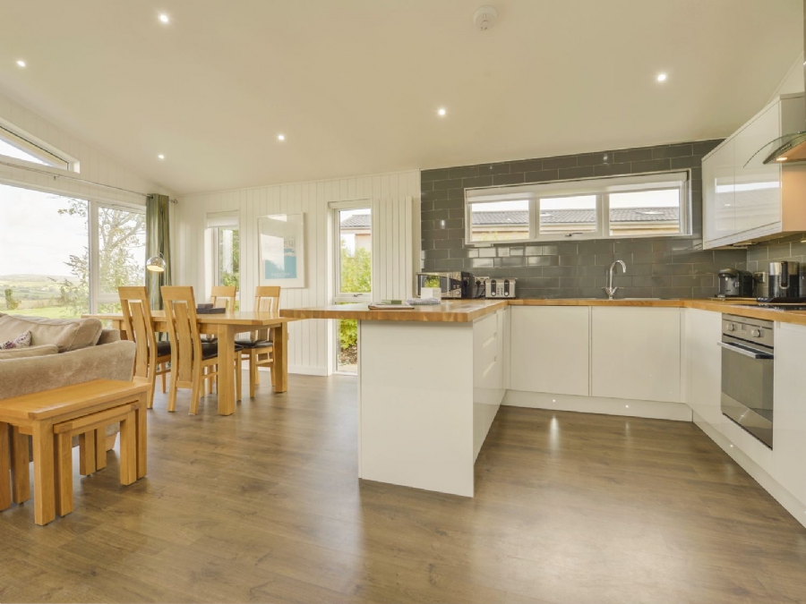 Once inside this superb lodge you will find an open plan living area with a kitchen, dining area and sitting area, all of which are well-equipped and have everything that you will need during your stay.