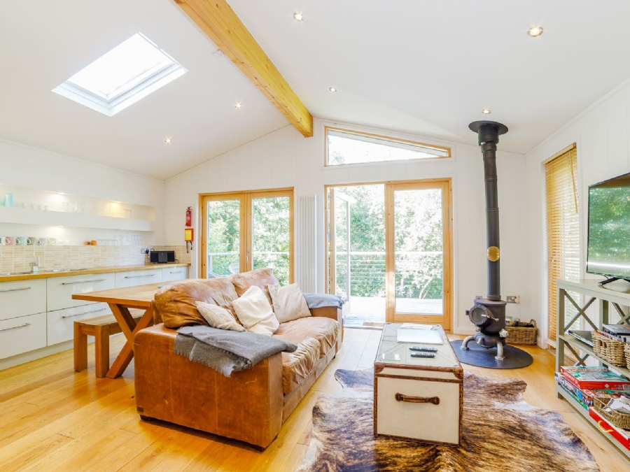This stylish lodge set in amongst trees on the 28 acre Stonerush Lakes lodge park, near Lanreath in Cornwall and is a romantic rural retreat for a couple to enjoy.