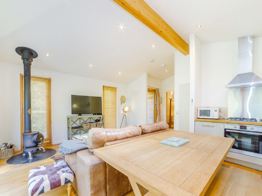 Inside, discover the spacious open-plan layout, complete with contemporary furnishings and a lovely light decor, ideal for relaxing and unwinding in this homely setting.