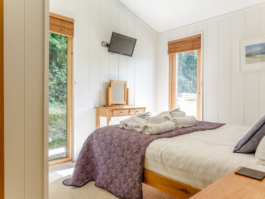 With a paved area to the back and decking with outdoor dining furniture to the front, this cabin encourages you to get outside and enjoy the Devon sea air.