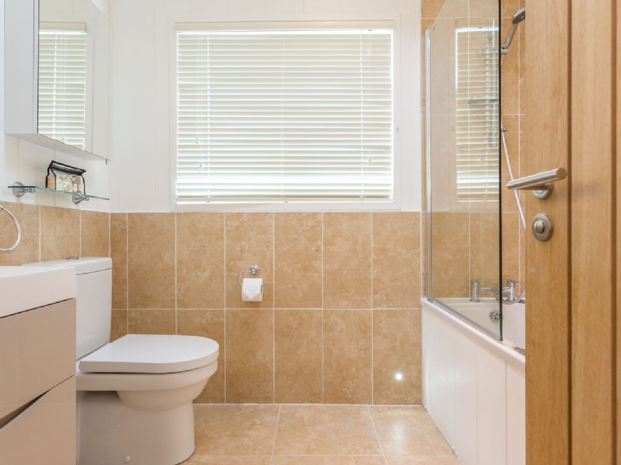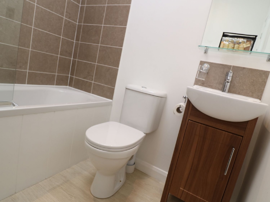 Finally, an all-white family bathroom completes the accommodation with an overhead shower.