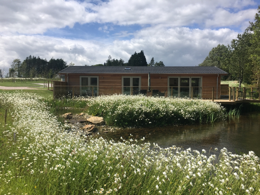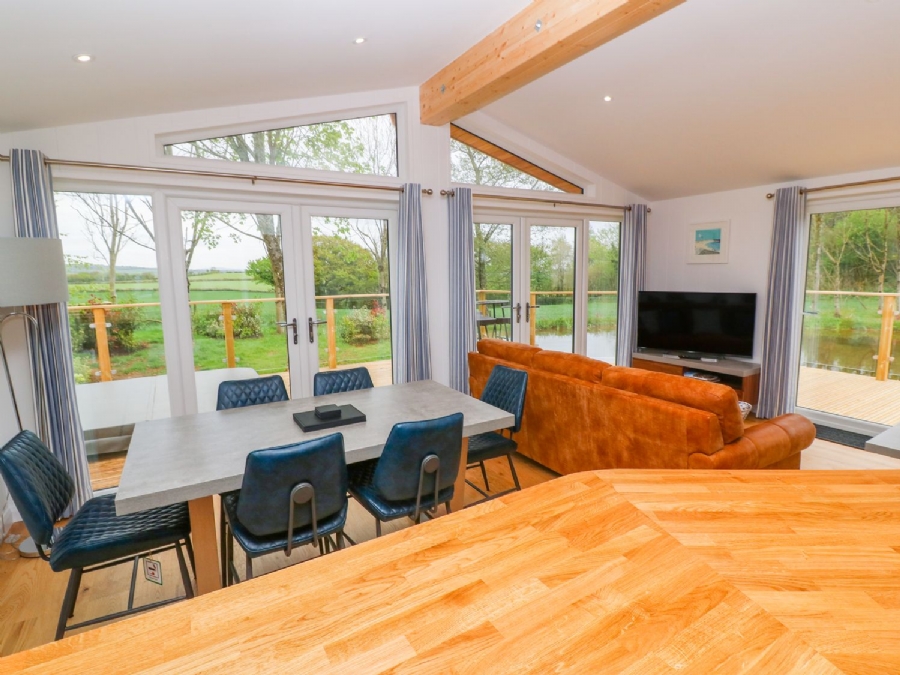 Spend a moment or two on the wide wrap-around deck, where the side deck offers lovely views across the adjoining farmland and unspoilt countryside whilst the main, south-facing deck overlooks both water features. Here, you can enjoy a spot of al fresco dining before dipping into the bubbling hot tub as the evening draws to a close.