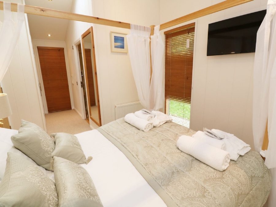 The spacious, open-plan living area has a well-equipped kitchen with dining area and a comfortable sitting area with leather sofas; perfect for relaxing after a long day of exploring all the local area has to offer. Floor to ceiling doors allow bundles of natural light to ooze into the lodge. The master bedroom boasts a king-size bed for a blissful nights' sleep, plus an en-suite shower room.