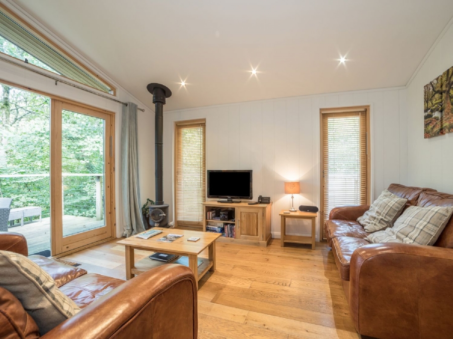 Inside meets outside on your own private and secluded decked terrace area complete with table and chairs and not forgetting your very own private sunken hot tub. Whilst you relax on your private outdoor area take in the natural beauty of your surroundings and dine alfresco next to the stream. Inside the lodge high quality furnishings blend seamlessly in your open-plan living area, complete with woodburner, perfect for a cosy evening.