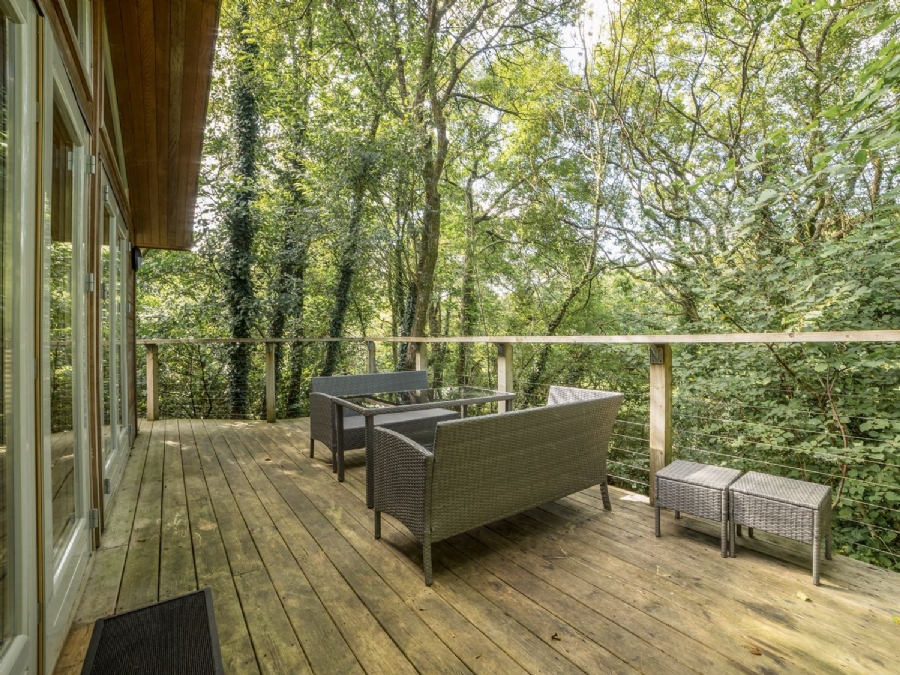 This stylish lodge set in amongst trees on the 28 acre Stonerush Lakes lodge park, near Lanreath in Cornwall and is a romantic rural retreat for a couple to enjoy.