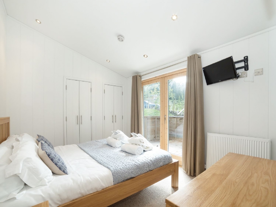 All on one floor once inside, through from the living space the master bedroom has its own doors opening on to the terrace, with its plush king size bed, its own flatscreen Freeview TV, and modern en suite shower room making it a relaxed hidey-hole.