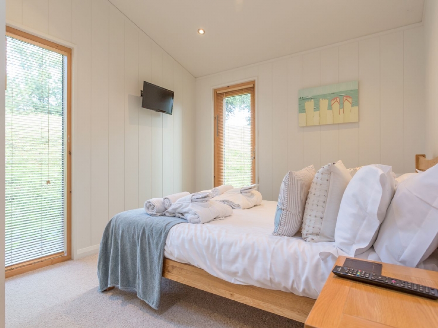 5 Hedgerow has two bedrooms, one a double with the bonus of an en-suite shower room, and a twin room which are zip and link beds and have the flexibility to be double bed on request. The lodge is completed with a family bathroom.
